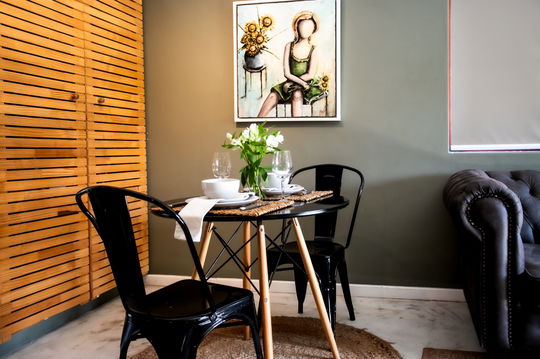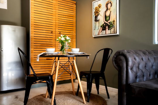 This retro self catering apartment is in the Oak Terrace apartment complex across the street from the guesthouse.