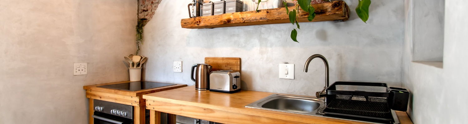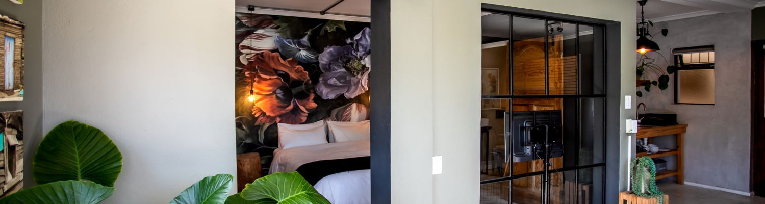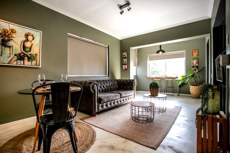 This retro self catering apartment is in the Oak Terrace apartment complex across the street from the guesthouse.